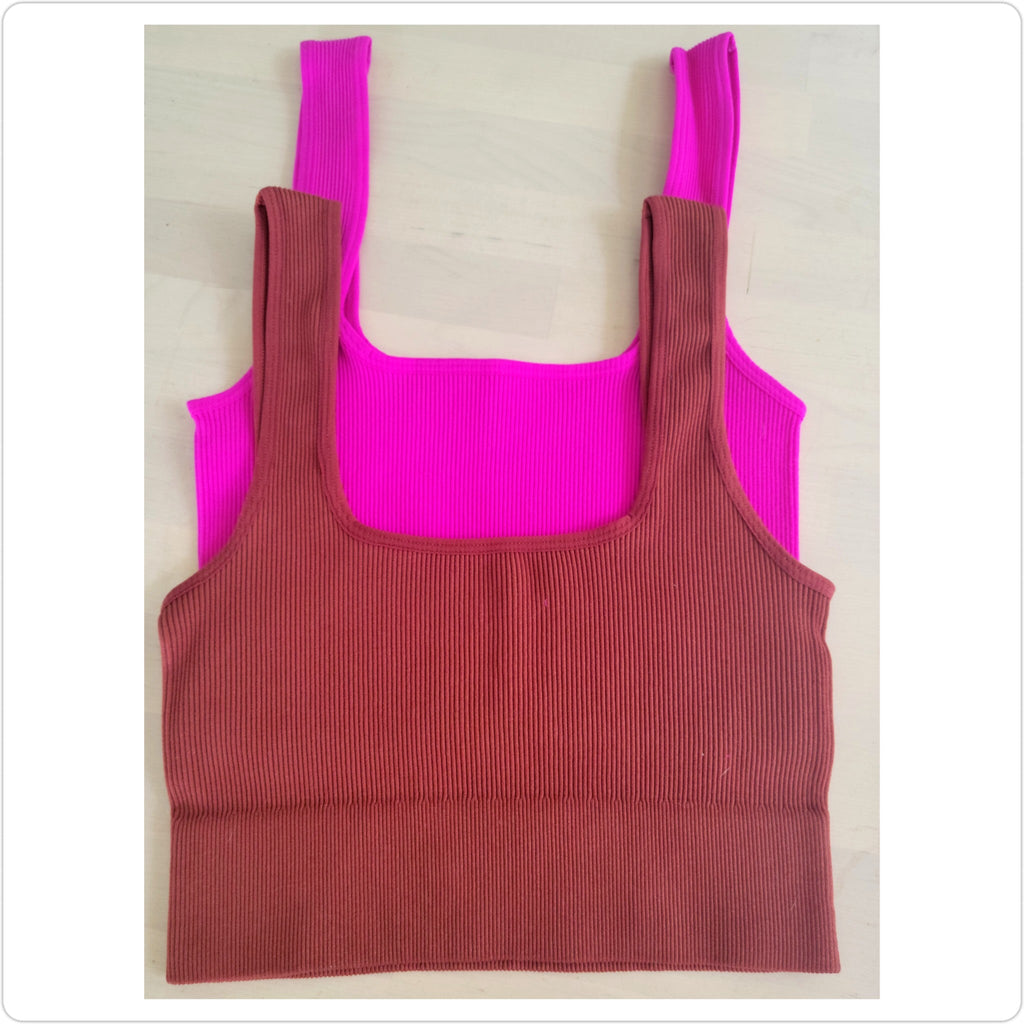 Ribbed Square Neck Crop Top in Rust