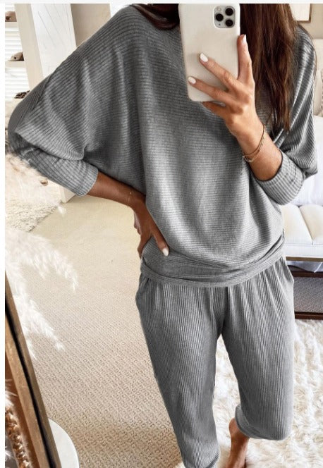 Grey Knit Batwing Pullover Two Piece Set