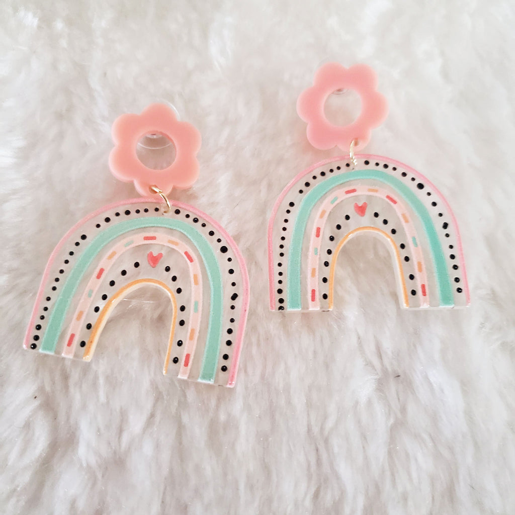 Pastel Pink Rainbow Heart Earrings